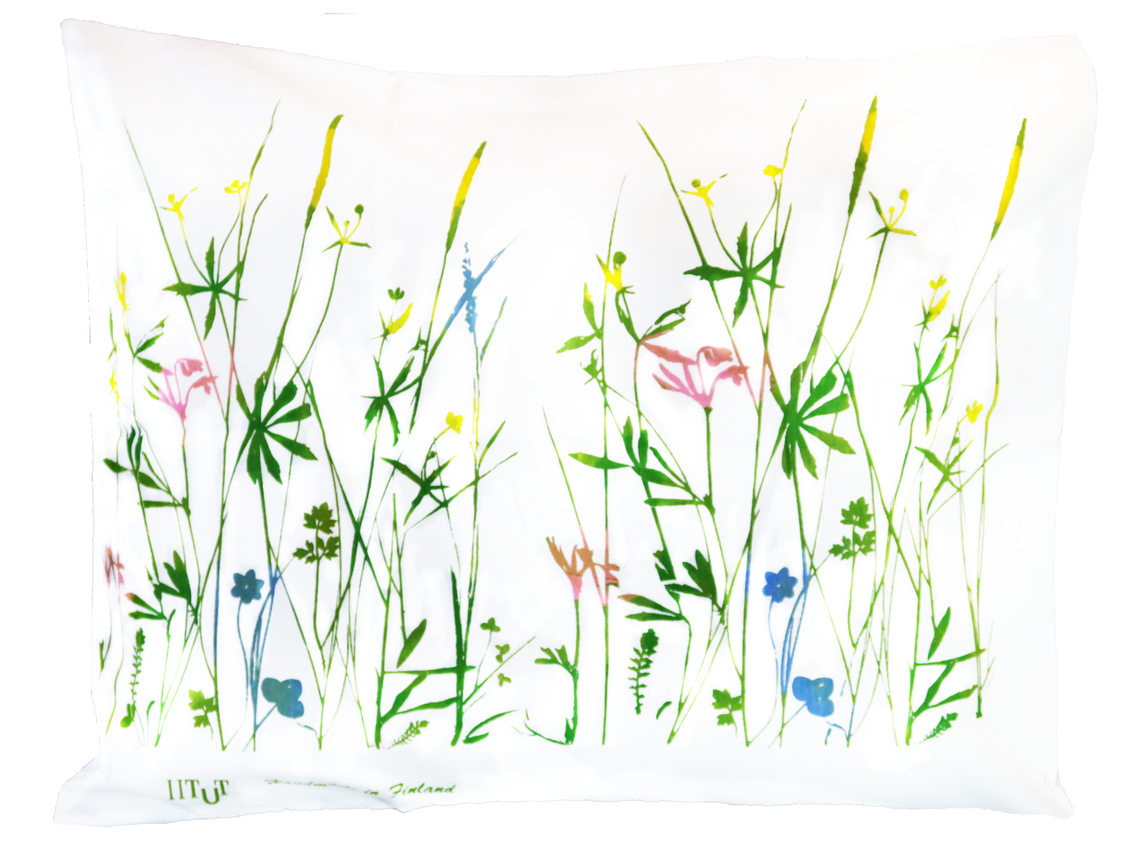 Tyynyliina on 100% puuvillaa ja kestää mainiosti 40 - 60C konepesun, mielellään nurin käännettynä, sekä 200C silityksen (kolme pistettä raudassa), suoraan kuvan päältä. Rumpukuivausta emme kuitenkaan suosittele. Tuotteen värit eivät leviä tai tahraa pesussakaan.